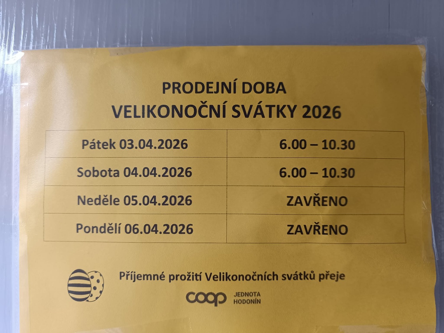 Prodejní doba Velikonce 2026 - Coop Jednota Nechvalín